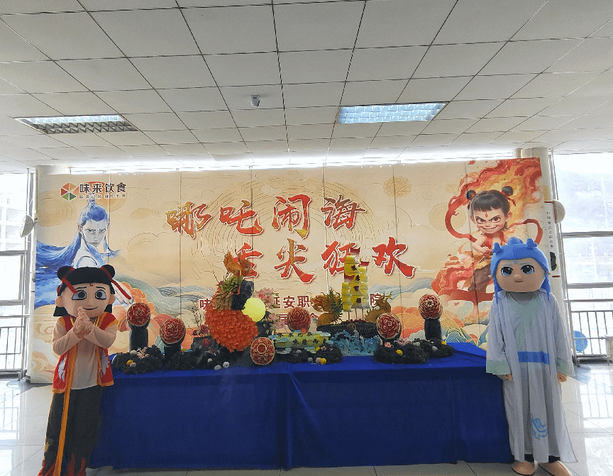 为丰富校园饮食文化,增添师生课余生活乐趣,4月18日3#餐厅二楼味来饮食举办了“哪吒闹海美食节”。此次活动将神话故事与美食体验相融合,这别具一格的视觉与味觉盛宴吸引众多师生前来参与。