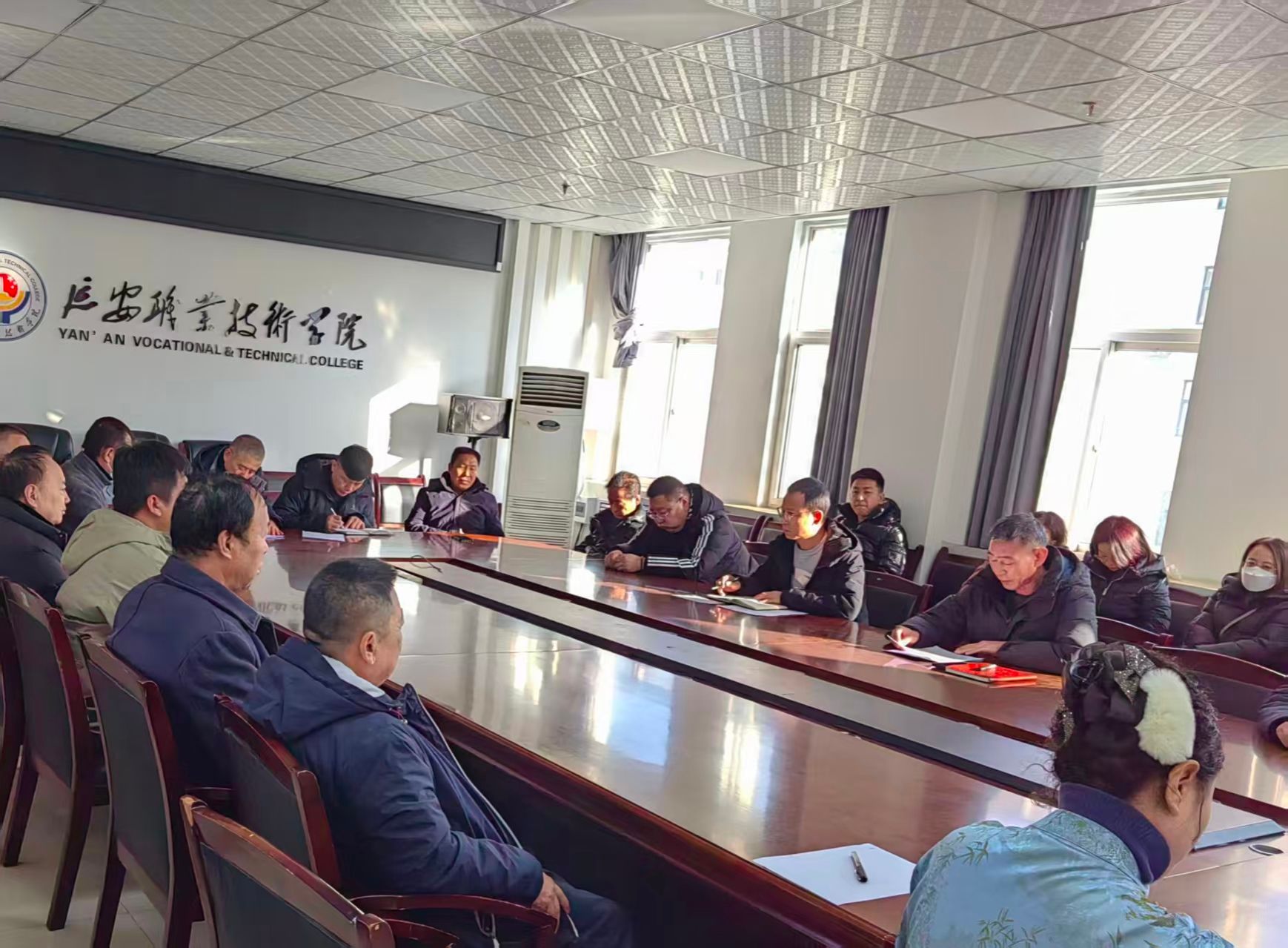2025年12月16日上午,后勤管理处在9号楼322会议室组织召开全体教职工大会。会议学习传达了《延安职业技术学院二级教职工代表大会实施细则(试行)》及《关于召开延安职业技术学院二级教代会的通知》文件精神,并以无记名投票方式,选举产生了李强、冯凤莲、刘金荣、刘小荣、徐春媛等14名同志为后勤管理处二级教代会代表。